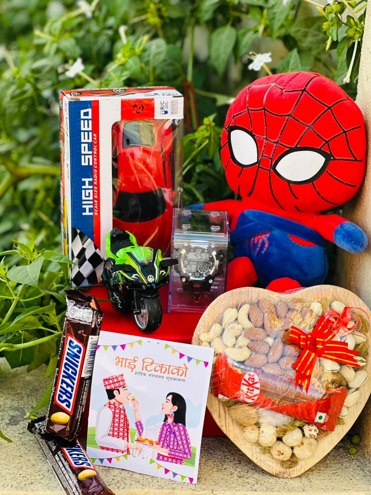 Whether your brother is near or far, this hamper is the perfect way to remind him that distance can never break your bond. At Dollmandu, we ensure that every package is beautifully wrapped and delivered with love β making it a memorable surprise for your brother this Bhai Tika.