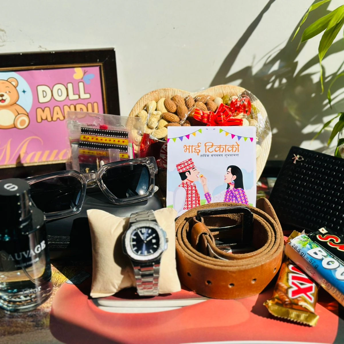 Each Bhai Tika Gift Set includes thoughtfully selected premium items such as stylish accessories, perfumes, dry fruits, chocolates, and festive essentialsβmaking it a complete and meaningful gift. Designed with love and care, this combo set blends tradition with modern gifting, ensuring your brother feels extra special and appreciated.