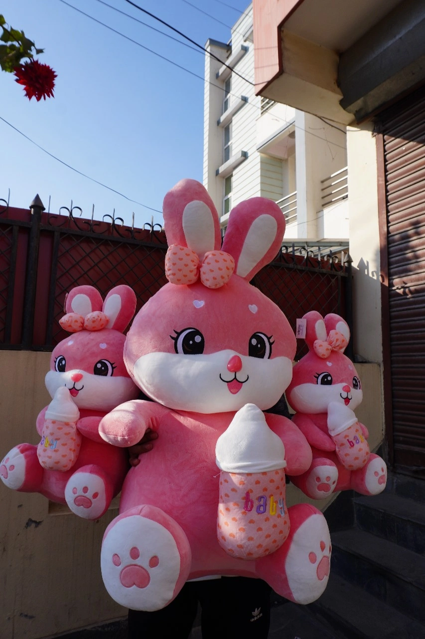 Bring home the charm of pure innocence with our Cute Bunny with Milk Bottle – Soft Rabbit Plush Toy, a heart-melting companion designed to spread love, warmth, and endless cuddles. This adorable bunny is crafted with premium plush fabric, ultra-soft filling, and a sweet baby-like expression that instantly brightens any mood. Holding a tiny milk bottle, this bunny gives off the cutest “baby-feeding” vibe, making it a perfect gift for children, couples, friends, and plush collectors.
