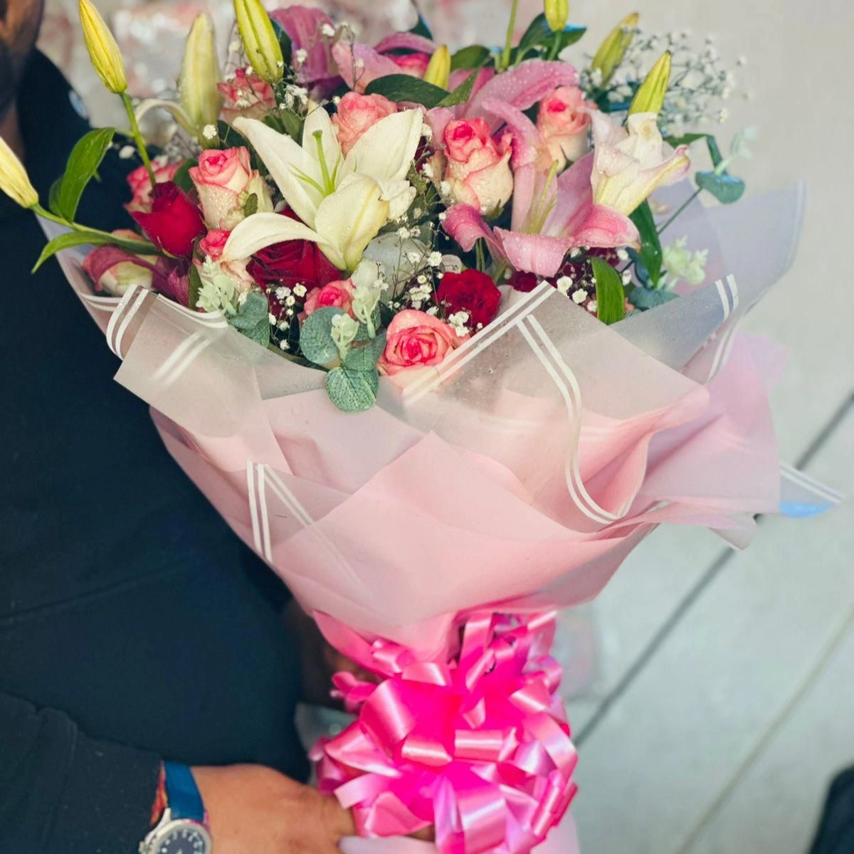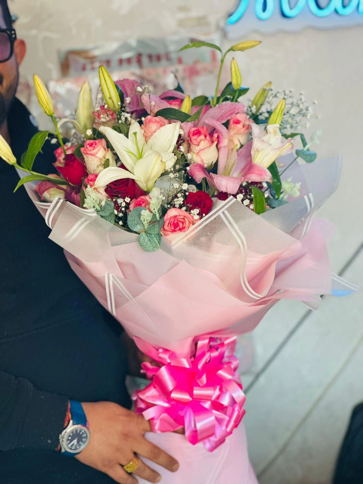 The gentle mix of roses, lilies, and seasonal blooms creates a charming look and a refreshing fragrance 🌹🌼. Whether it’s a birthday, anniversary, Valentine’s Day, proposal, surprise, or just to say “I miss you”, this bouquet speaks straight from the heart 💕🥰.