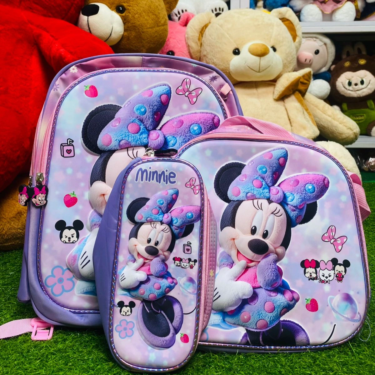 Designed with colorful patterns like Hello Kitty, Mickey & Minnie, Frozen, Elsa, Liverpool, and more, this set is suitable for both boys and girls. The sturdy zippers, comfortable padded straps, and quality stitching ensure long-lasting use, even for busy school days.