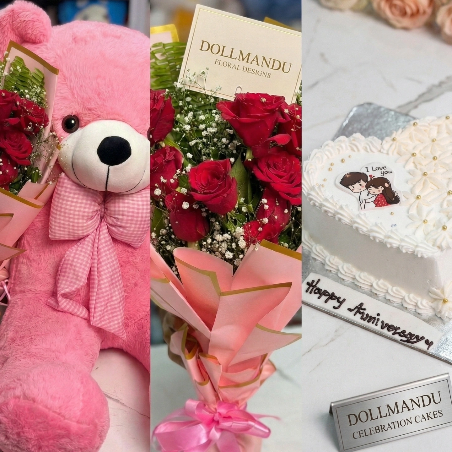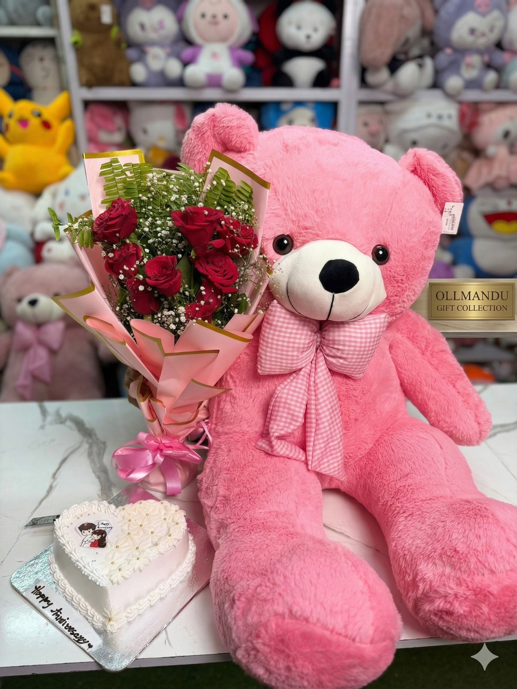 The large teddy bear makes a lasting memory, the roses add a touch of elegance, and the cake completes the celebration with joy. It’s an ideal gift for birthdays, anniversaries, Valentine’s Day, proposals, or any romantic surprise.