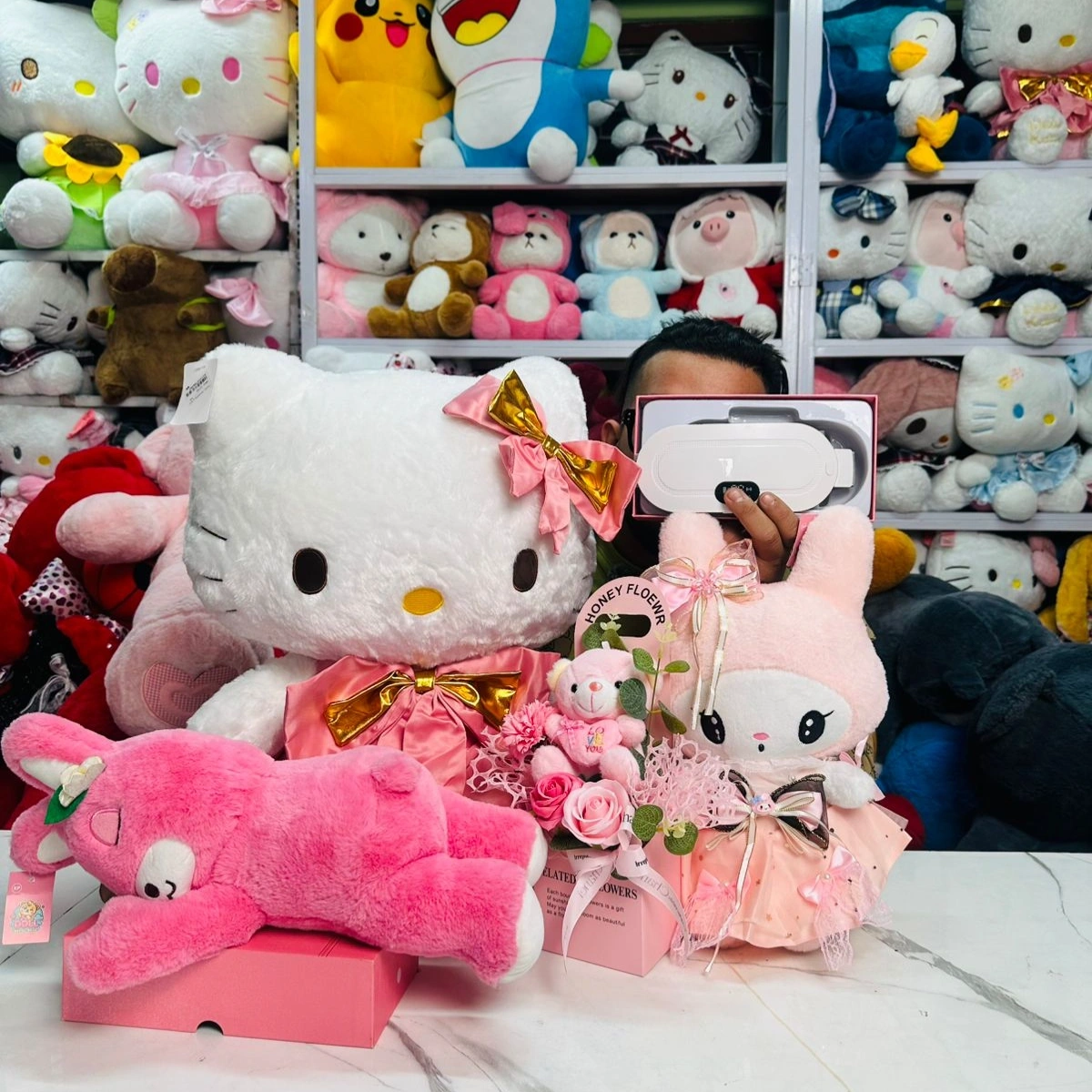 Adorable dolls like Hello Kitty and Melody – perfect for cuddles and decoration.