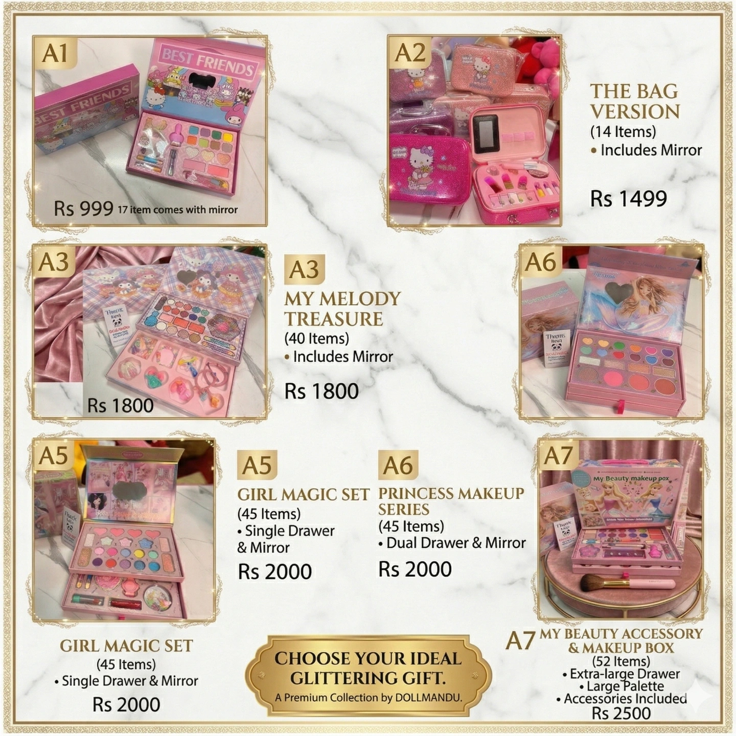 We offer different versions of the makeup kit to suit every need and budget: